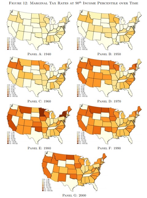 In any event, the authors also show how, over time, states have taxed upper-income households.
